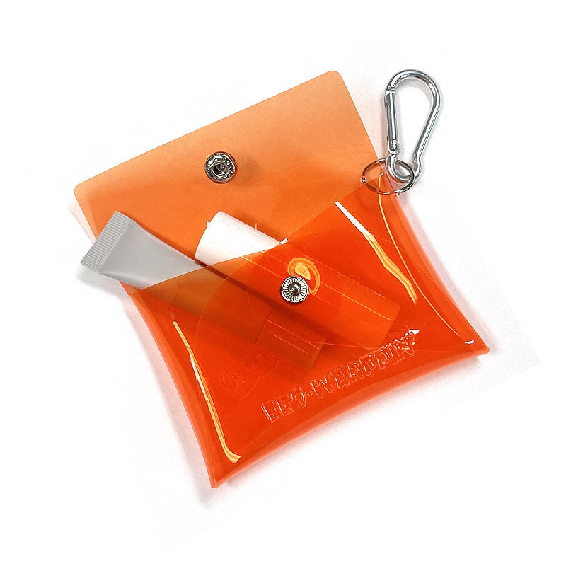 夏にピッタリなクリア素材の小物入れが新登場!カラビナ付きのためカバンなどに取り付けてご使用いただけます。ビビッドなオレンジと落ち着いたブラウンの2色展開。[カラー]ORANGE[サイズ]約110×75×15mm[素材]PVC【注意事項】・デジタル画像処理のため、実際のカラーが画像とは若干異なる場合がございます。・注文毎に別途送料がかかります。一度別々にご注文された商品をまとめて発送することはできかねます。予めご了承ください。
