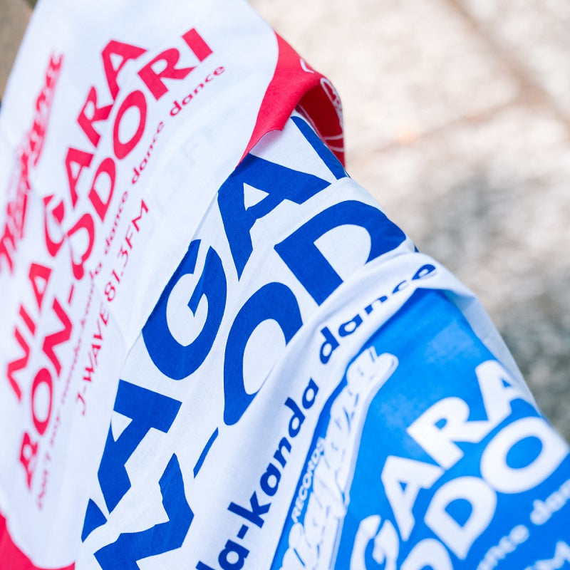 大滝詠一サインプリント入りナイアガラ盆踊り手ぬぐい/青