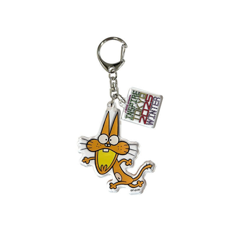 「INSPIRE TOKYO 2025 WINTER」と「生誕90周年記念 赤塚不二夫祭」コラボレーションのオリジナルグッズ。赤塚不二夫作品の人気キャラクター『ニャロメ』デザインのキーホルダー。ニャロメ!!