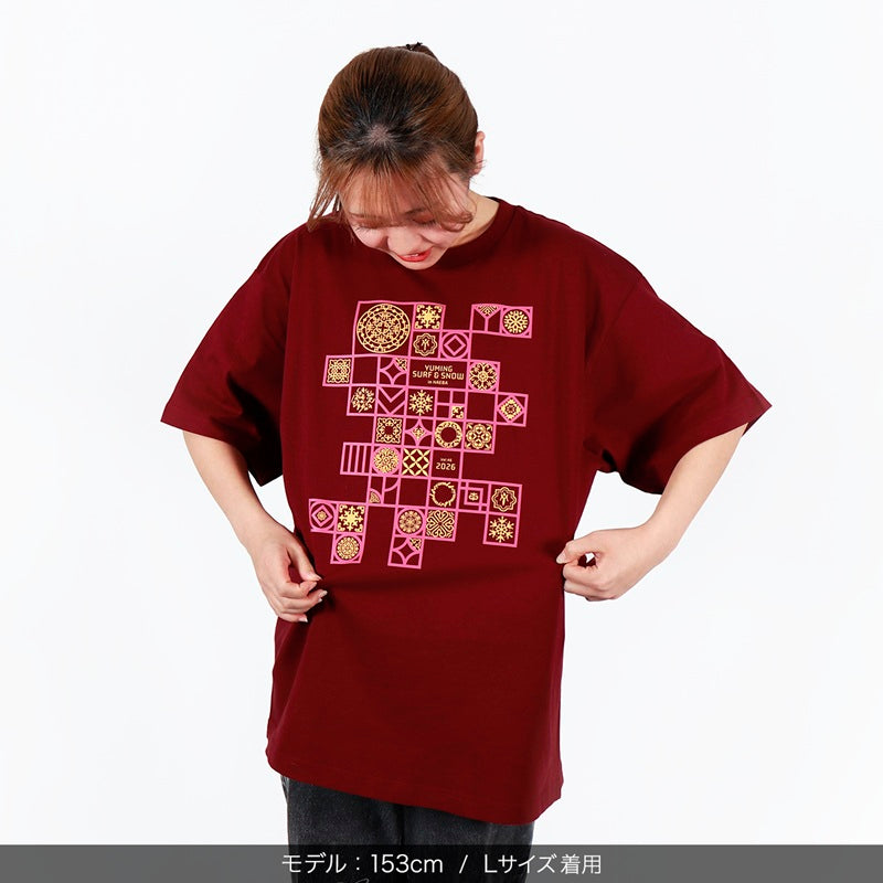 オリエンタル半袖Tシャツ<バーガンディ>
