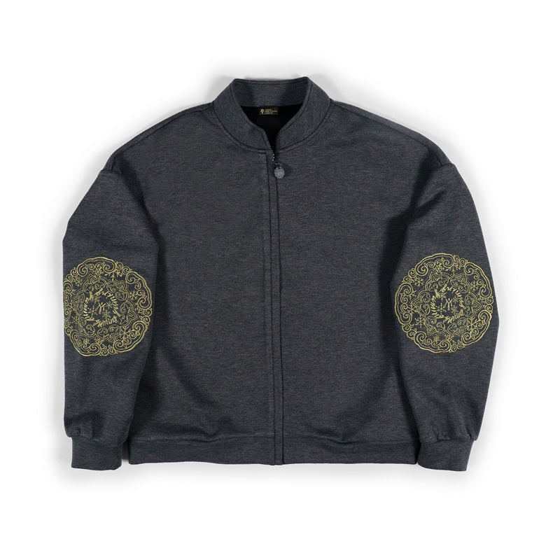 中国の三大刺繍と言われる汕頭(スワトウ)刺繍をイメージしたデザインを両袖にゴールド刺繍した特別ジャケット。