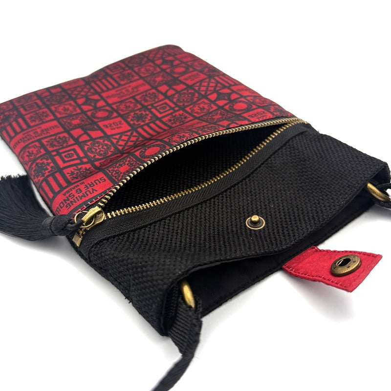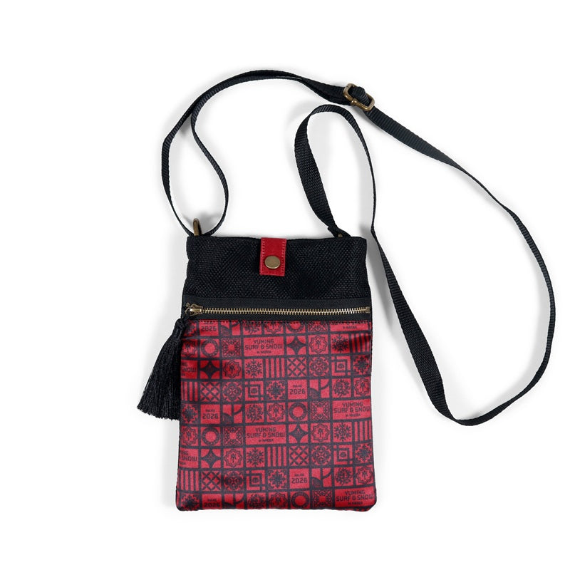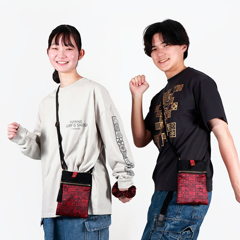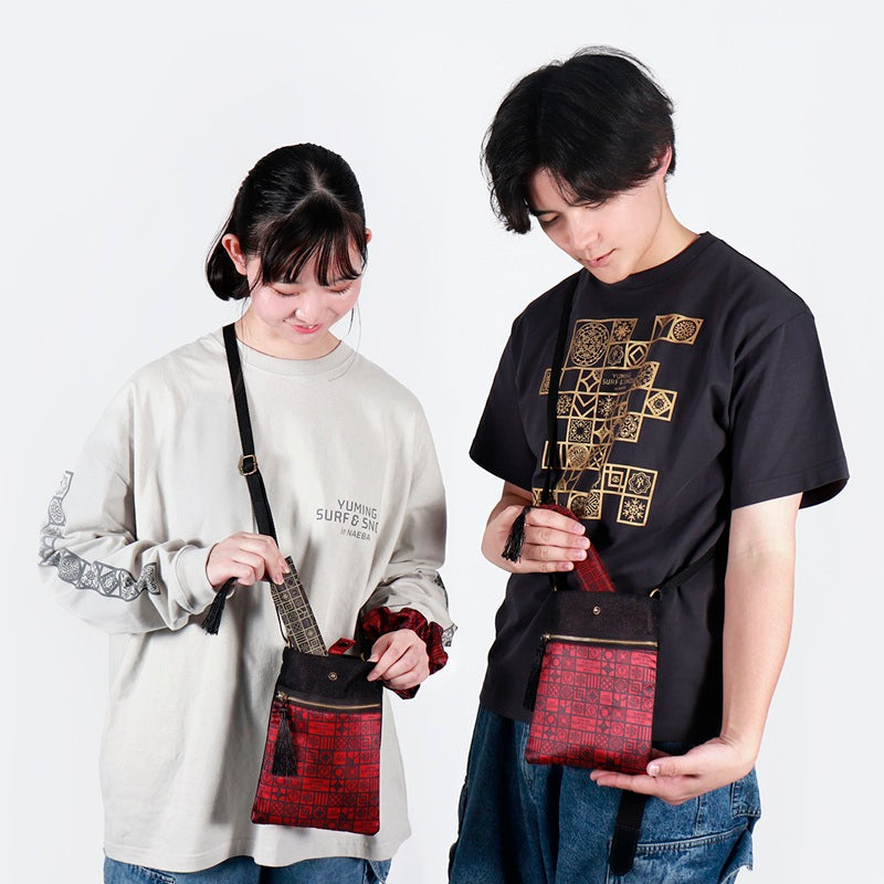 メインビジュアルのアレンジ赤パターンを使用したポシェット。