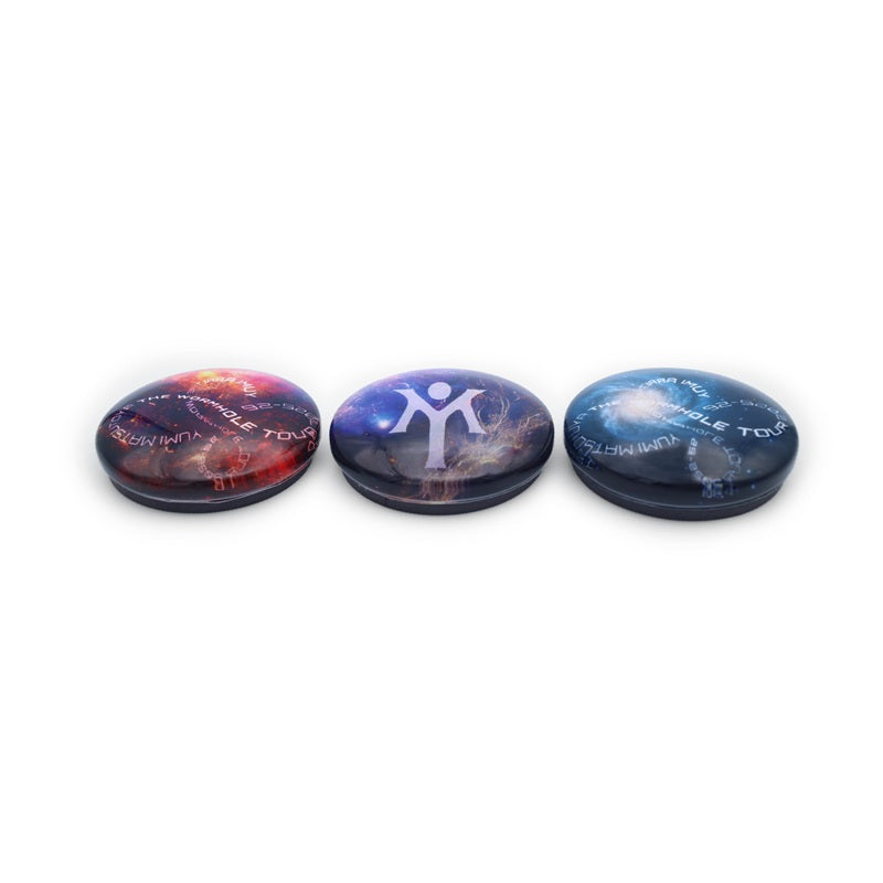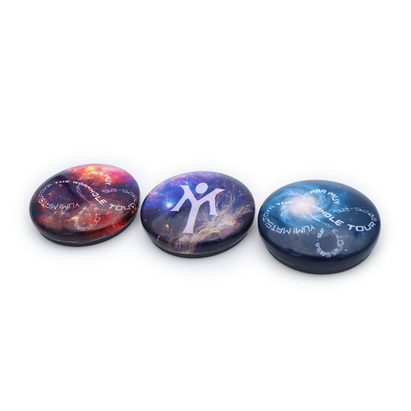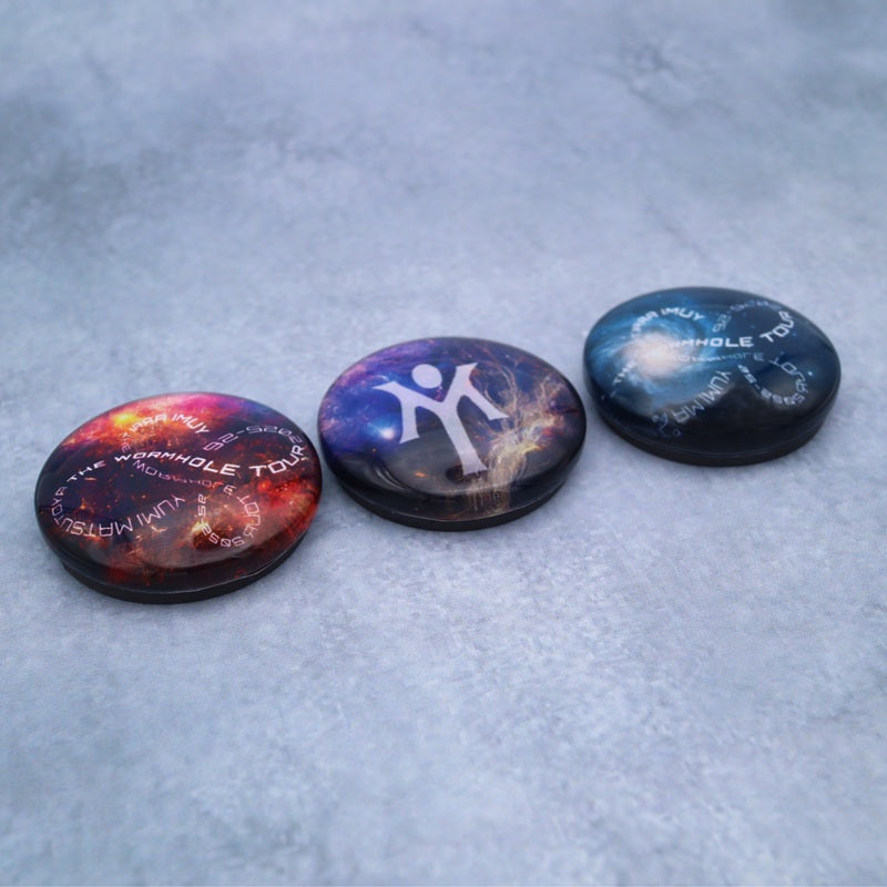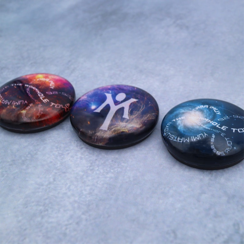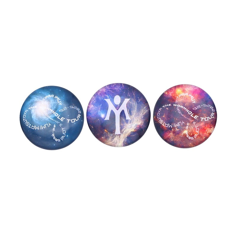 宇宙柄やロゴ、YMマーク入りで、厚みのあるガラスが柄に奥行きをプラス。