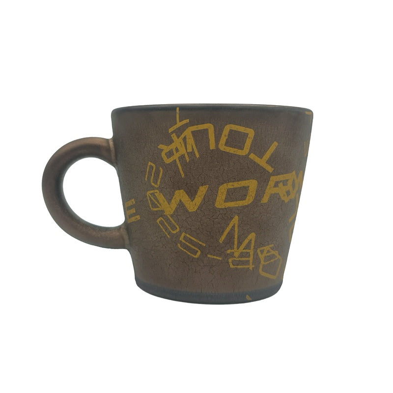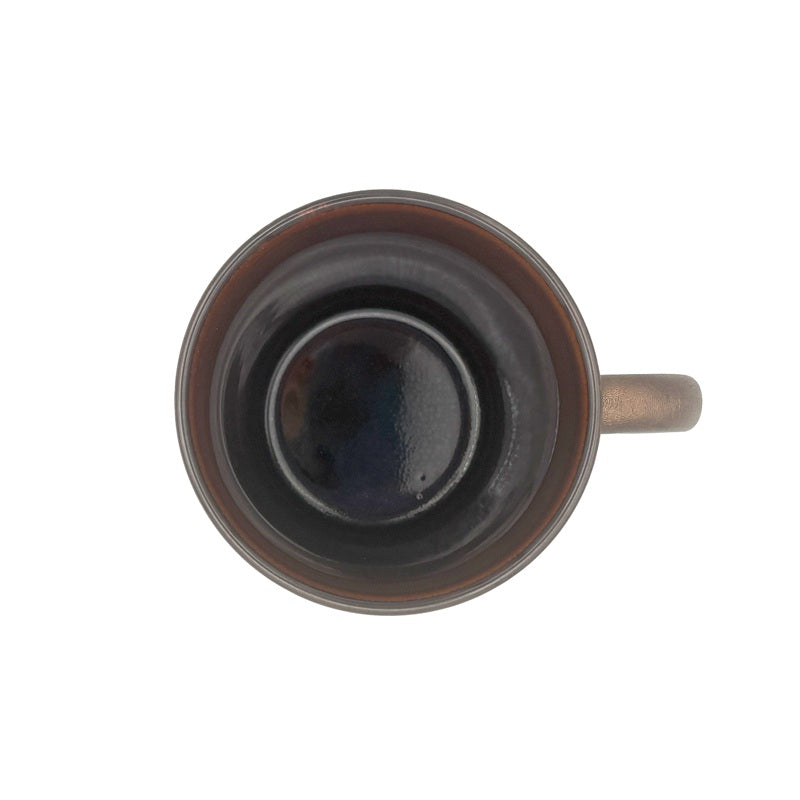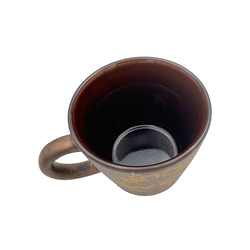 ざらっとした質感にゴールドプリントを施したマグカップ。手作りのため、色味や塗りの濃淡、風合いに個体差がありますが、ヴィンテージ感としてお楽しみください。