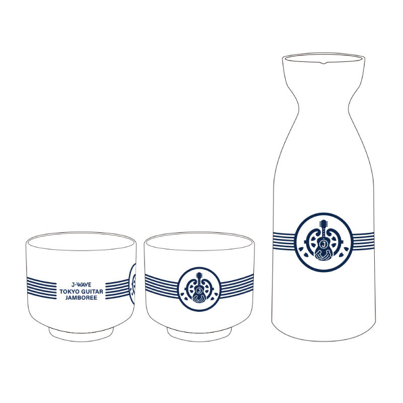 ギタージャンボリーの家紋ロゴをあしらった、徳利&おちょこ2個セット。音楽花見でほろ酔い!